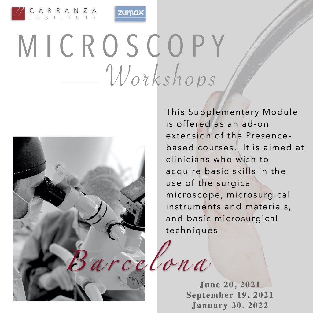 Additionally, a supplementary Surgical Microscopy Training Workshop can be taken. This 6-hour workshop is offered only to course participants on the following day of the course. The number of seats available for the supplementary activity is very limited and booked on a first-come first-serve basis.