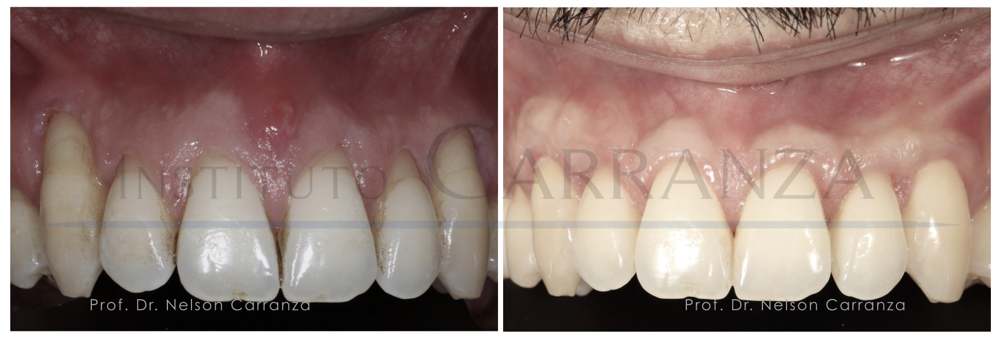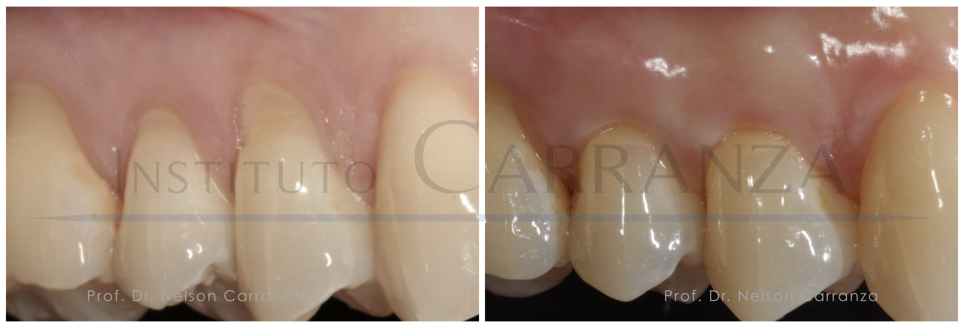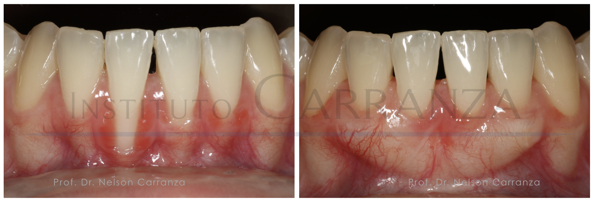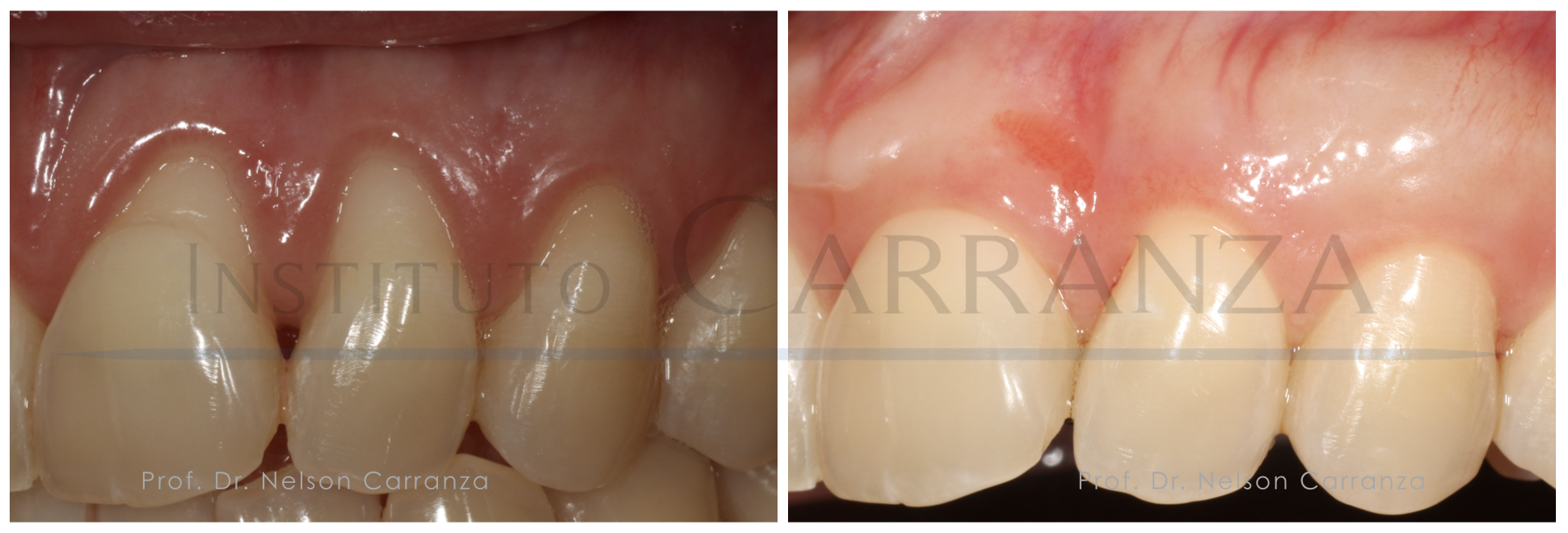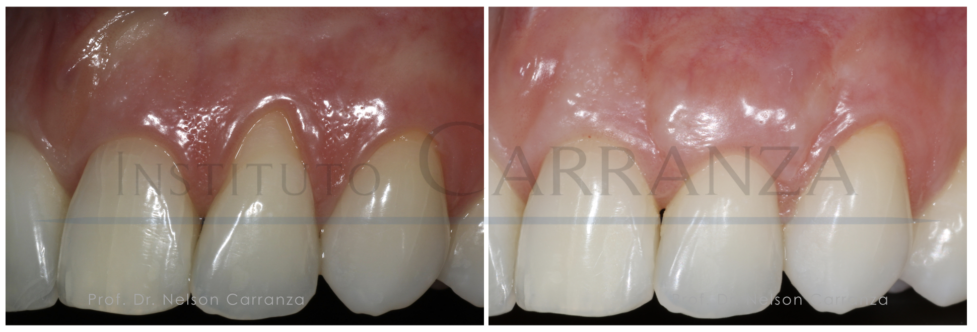 Retraccion de encía recuperada por medio de un injerto de encia y microcirugia (Dr. Nelson Carranza)